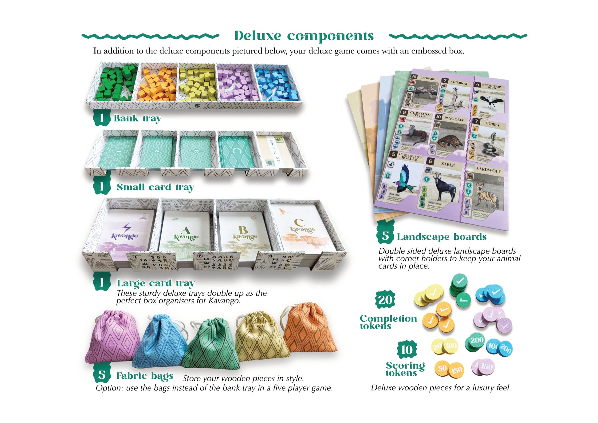 The tokens are upgraded to wooden tokens for a classic deluxe finish.
